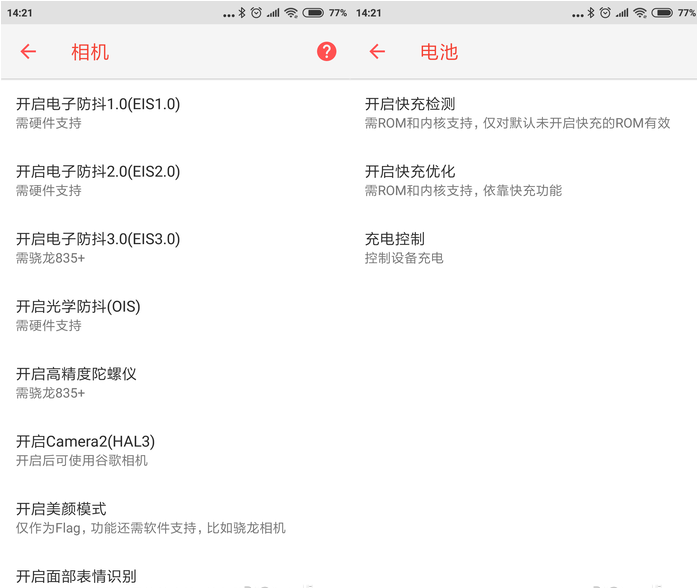 其他一些功能,可以看到连去除因无法连接Google服务出现的感叹号的功能都有