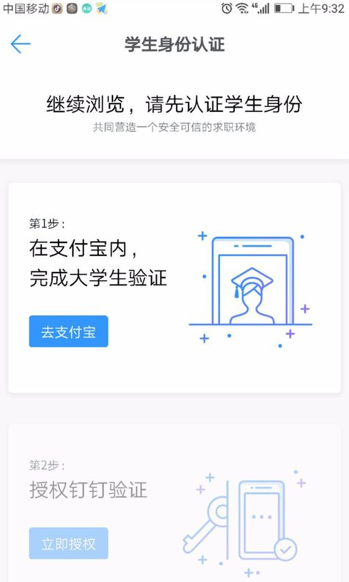 打开钉钉新校招服务,需要您的身份,若您是一名学生,就点击“我是学生”。
