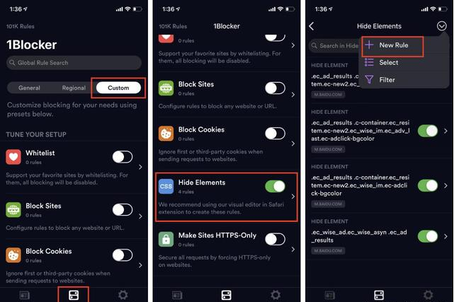 1Blocker X 是 iOS 上一款功能强大的内容拦截器, 借助 1Blocker X,我们可以制定相应的规则,方便地屏蔽百度搜索页面中的广告。你可以在 App Store下载 1Blocker X。