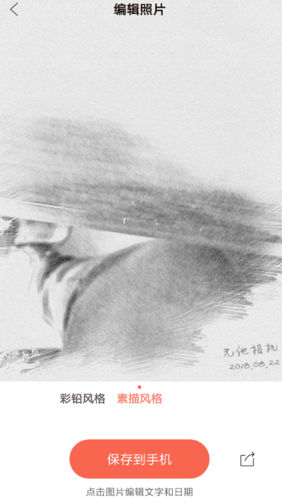 选好之后,就会自动生成素描照,素描照片分为【素描风格】和【彩铅风格】,选择自己喜欢的。