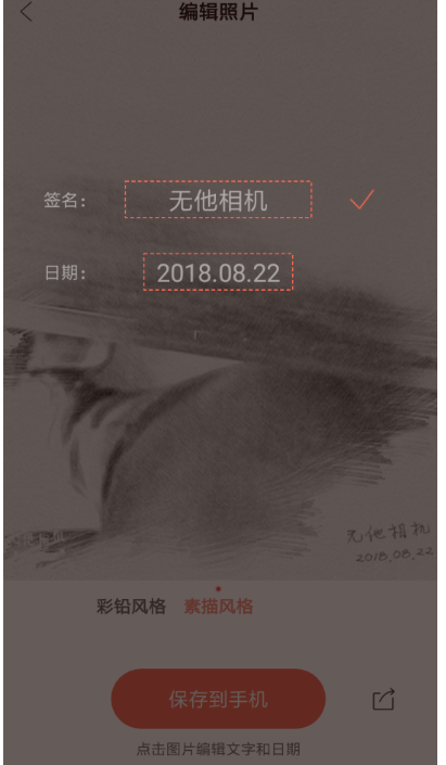 除此之外,我们可以从照片右下角设置签名和日期水印,让素描照片带上个人印记!