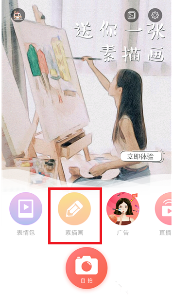 在手机中打开无他相机,进入页面,点击【素描照】。