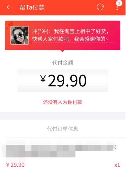 淘宝选好了物品,奈何没钱付款、又没开通花呗,怎么办呢?你可以找朋友代付,具体操作如下。