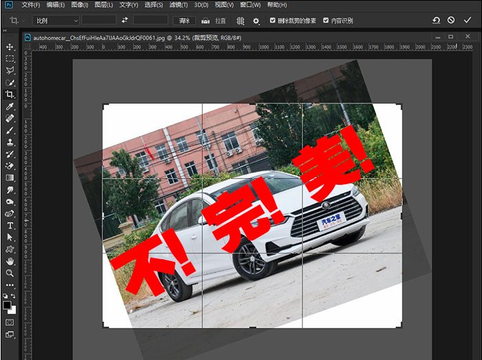 裁剪时我们常常需要调整图片的角度,这一调整,很可能会让画面超出边界,从而在边角处留下讨厌的白边,最终让裁剪结果不!完!美!