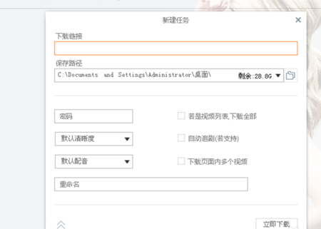 进入下载页面,点击左上角的新建选项,调出新建任务对话框,