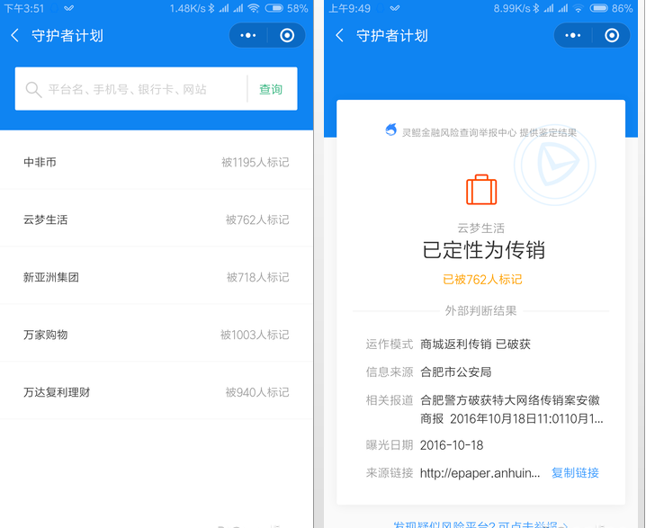 守护者计划--诈骗传销查询