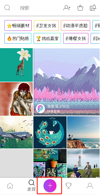 1、打开PicsArt软件,进入页面,点击“+”,