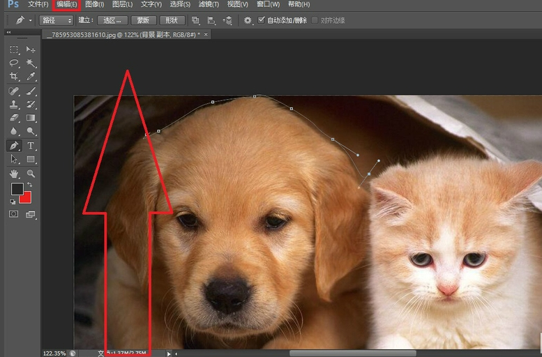 如图,在photoshop软件中有一张图片,处理过程中出现了失误,点击菜单栏的编辑,