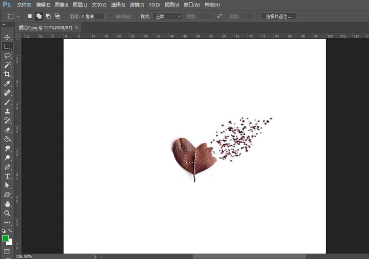 打开Photoshop软件,导入一张图片,用选框工具选中一部分想要选取的像素。