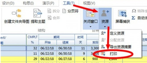 5.MindMapper甘特图绘制完成后,通过【资源】工具可以打印出来。