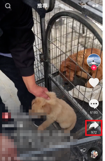 打开抖音App,找到想要推广的视频作品,在视频播放界面点击【转发】按钮。