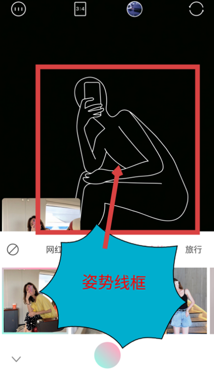 返回拍照界面,我们按照这个轮廓来摆姿势,然后点击拍摄即可。