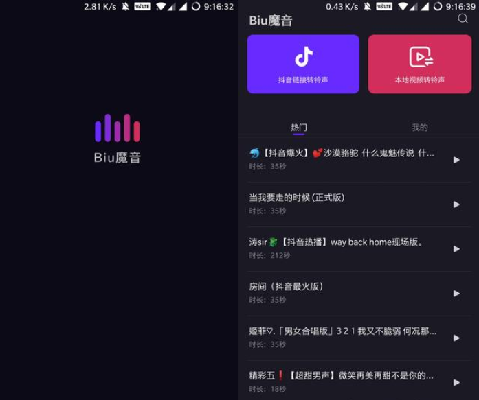 Biu魔音是一款支持链接转铃声、本地视频转铃声的超强App,适用于抖音、快手等短视频平台。刷抖音时听到喜欢的音乐,又不知道如何下载,现在有了Biu魔音就方便多了。