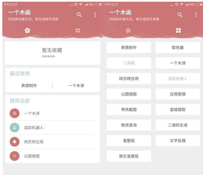 一个木函App支持多种小工具的添加,包括翻译、取色器、以图搜图、二维码生成等等,有了它,你就不用挨个下载安装手机应用,绝对是以一抵多。