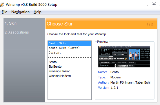 Winamp 5.8安装和旧版并没有什么区别,也没有捆绑软件。安装后,会让你选择皮肤和文件关联。不得不说,Winamp的皮肤的确相当经典,选择了“Classic”风格,立刻让你满载回忆。由于Classic皮肤非常具有情怀,所以下面就使用这个皮肤来继续截图吧。