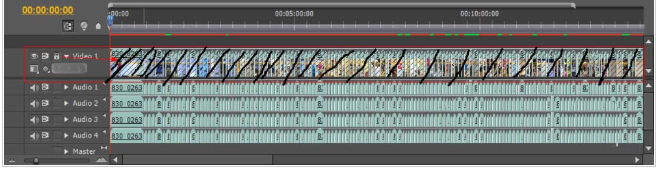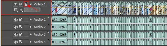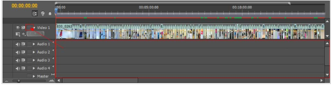 3、确认视频轨道上的素材被黑色细杠覆盖,如图,