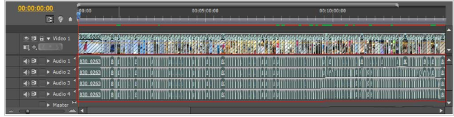 4、在键盘上按住Ctrl+A,或者点击任意音轨上的素材,