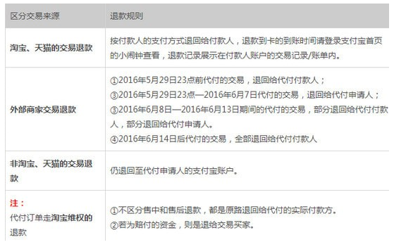 1)卖家同意退款申请的:退代付人