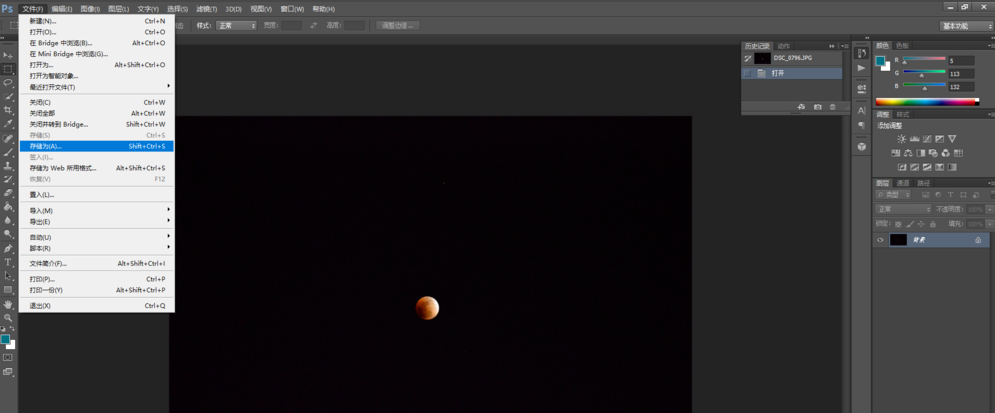 然后点击菜单栏的文件——存储为,如图,