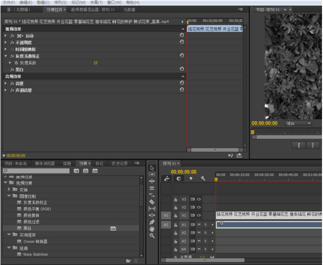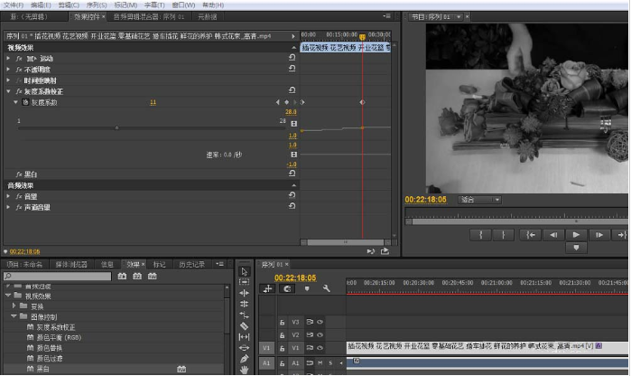 Premiere如何将彩色视频黑白化?
