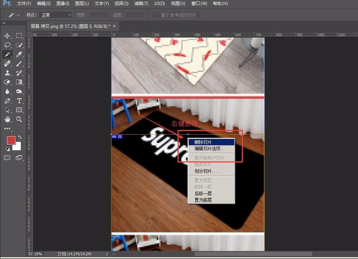 如果需要删除切片,选中切片、然后右键选择删除,或者直接按delete键删除,