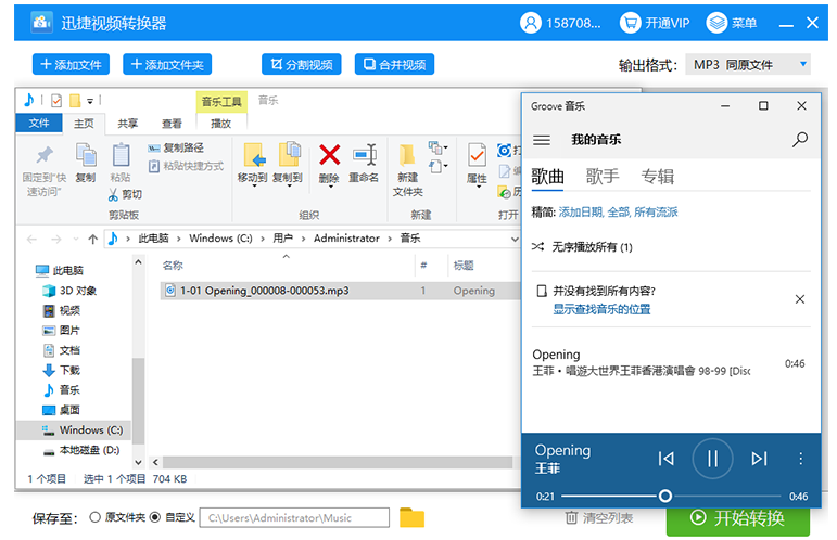 点击“打开”,你就可以在保存位置找到成功转换剪切的音频文件,点开查看效果。