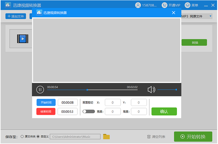 添加完成,点击剪切按钮就可以裁剪音频片段了,然后选择“开始时间”和“结束时间”(留下的音频片段),点击“确认”,你会发现转换文件下面的长度是刚刚选择的音频片段,