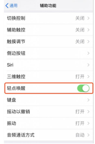 打开iPhone,依次点击【设置】-【通用】-【辅助功能】,可以找到轻点唤醒并进行开启或关闭。