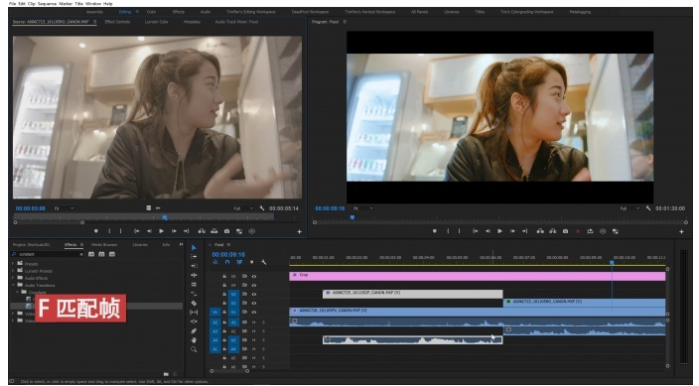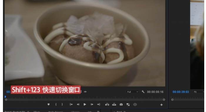 当你选中一个窗口的时候就没办法操控另一个窗口,传统的切换方法是使用鼠标点击,其实按住Shift+123、你就可以自由切换到需要前往的窗口。例如你可以迅速切换到素材监视器,设定出入点后将素材插入到时间线上来进行进一步的处理,这是我最经常使用的快捷键。