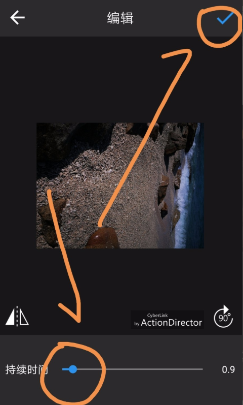 拖动滑块来调整每幅图片的播放时长,调整完毕,点击对勾标志,