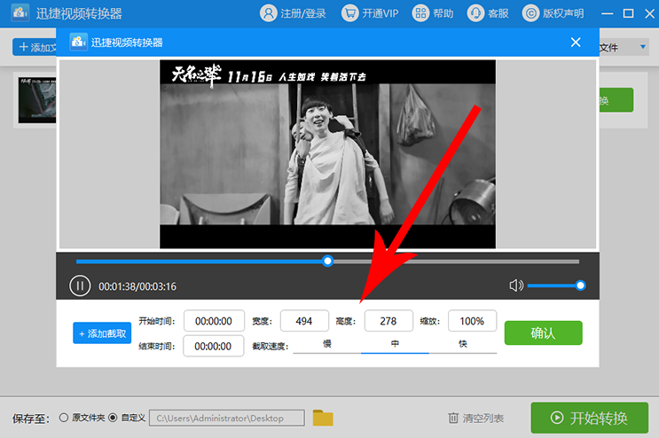 GIF动图制作完成,点击开始转换,等待一段时间,GIF动图会输出到指定位置(桌面)。