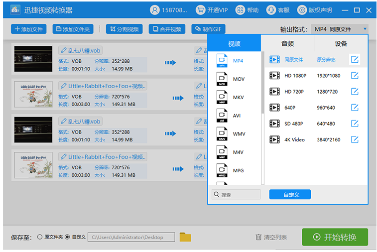 VOB是光盘文件格式,可以使用DVD或者VCD进行播放,否则无法正常打开。如果我们需要在手机或者电脑中播放VOB文件,必须先将其转换成MP4格式,下面介绍详细方法。