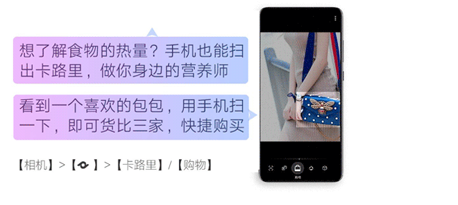 在EMUI 9.0的智慧视觉中,集成了五项强大功能:扫码、翻译、购物、识别食物卡路里、识物,这颗“小眼睛”让我们学到更多知识。