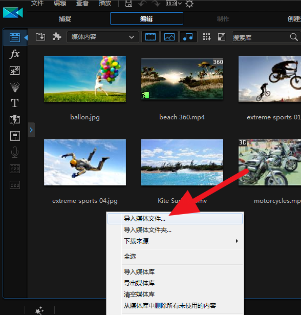 对着素材区,右击导入视频文件,