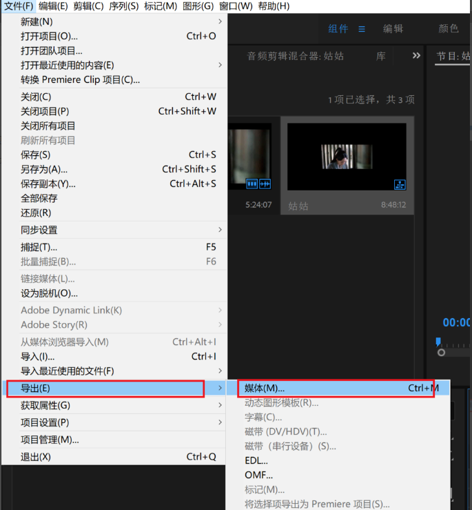 导入视频素材,鼠标右键单击视频,点击“从剪辑新建序列”,