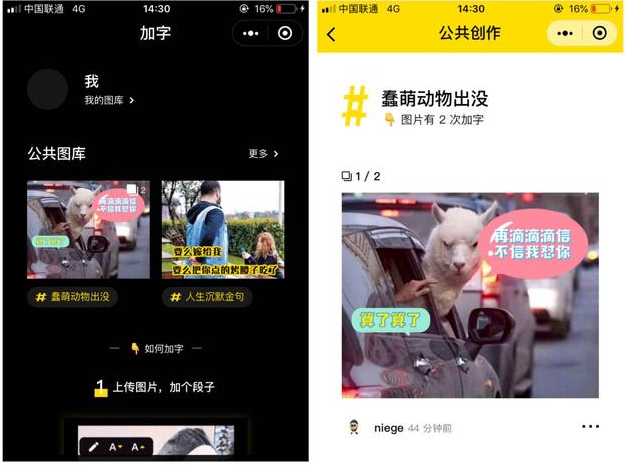这是一款非常好玩的恶搞小程序,可以在图片上任意加字,例如添加各种台词、歌词等等,随便发一张图片就是在讲段子、说故事,来点儿乐趣多好吖!