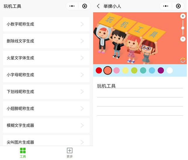 玩机工具就是一款小工具合集,非常实用,它可以生成火星文字体、小翅膀昵称、空白昵称、小人举牌等等,让你全方位展示自己独特的个性。