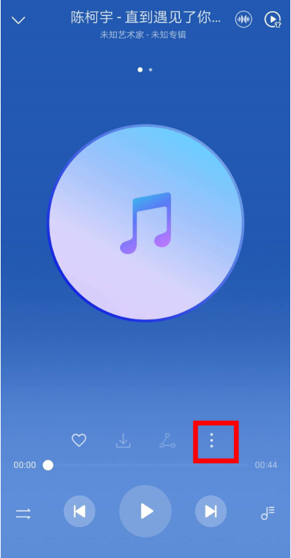 打开【音乐】程序,点击进入,选择你喜欢的一首歌曲,点击下方的三点图标,