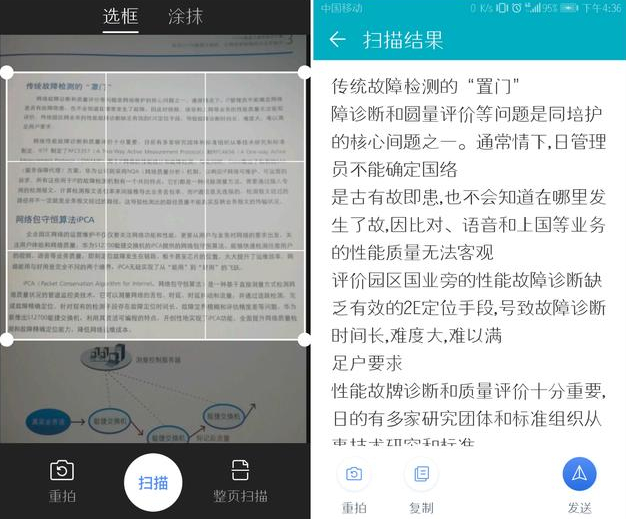 将手机对着书本、图片进行拍照,点击【扫描】,扫描结果如图,你可以选择复制文字、或者直接发送。