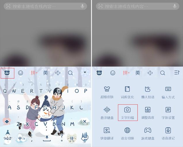 随便打开一个输入界面,点击【du】符号——【文字扫描】,