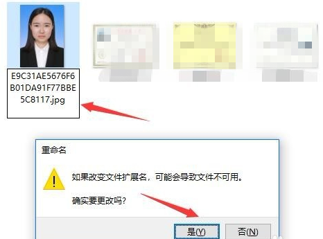 修改文件拓展名为jpg或者jpeg,这是最常见的图片格式,点击是,