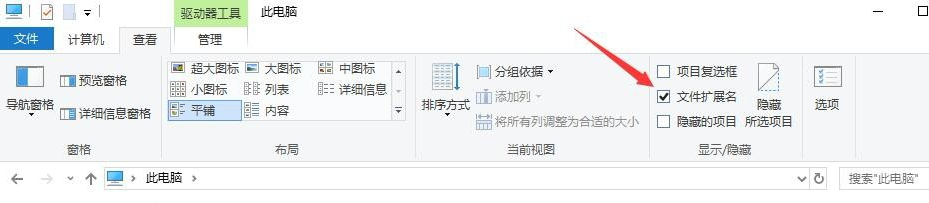 如果重命名的时候发现没有拓展名,点击打开计算机,点击【查看】选项(win10系统),
