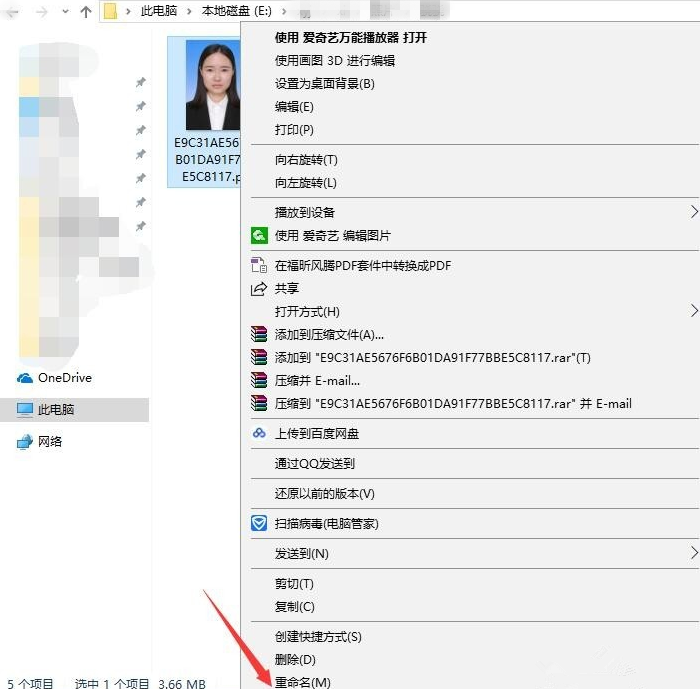 首先,右键点击该图片文件,选择重命名,