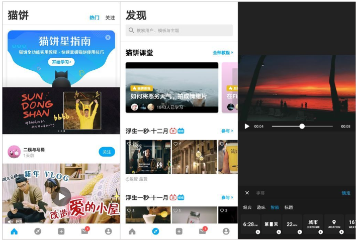 猫饼APP是一款手机视频剪辑软件,操作很简单,首页提供了vlog新手入门教程,在「发现」页面还可以直接套用其它用户发布的模板,非常适合vlog初级玩家。猫饼APP使用免费,提供了多种字幕样式和电影级别的滤镜,最重要的是,它没有水印,下载猫饼APP,记录你生活中的有趣瞬间!