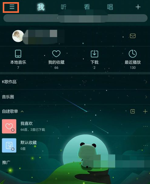 打开手机酷狗音乐,进入首页,点击左上角的三条杠图标,