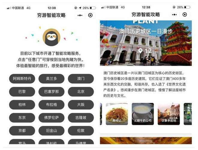 “世界那么大,我想去看看”,这可是很多人的梦想,但是却被账户余额拦住了脚步!其实我们可以选择穷游的,【穷游智能攻略】小程序为你推荐当地最有趣的景点、最好玩的路线,给你不一样的旅游的体验,谁说没钱就不能旅游?
