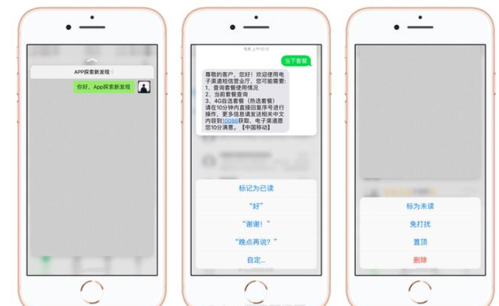 短信太多了,但并不是每条都必须看到,你可以尝试按压一条短信就可以预览信息,上滑动作还可以对它进行其他操作,锁屏下的通知可以一键清理。你也可以试试按压你相册里面的图片,同样适用预览查看。