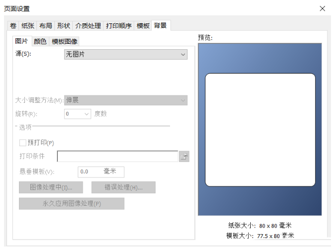 打开BarTender软件,新建一个空白模板,鼠标右击模板,点击进入【页面设置】窗口,选择【背景】,