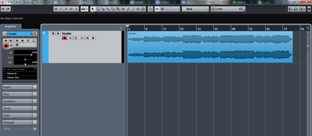打开Cubase音频编辑软件,导入一份音频文件,确保播放正常,如图,