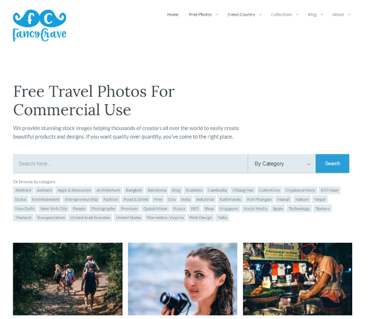 Fancycrave是一个专门收录“旅行”风格照片的免费图库网站,所有图片均可免费用于个人以及商业用途,如果你需要查找一些与旅游、生活相关的照片,可以来这里下载。